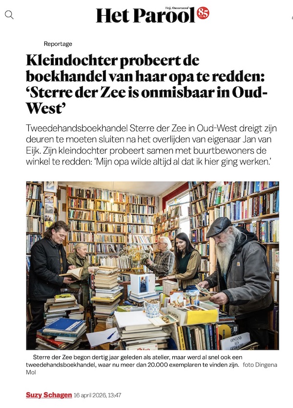 How to find Sterre der Zee Tramline 17 Get down at tram stop/halte "Ten Katestraat" (Ten Kate markt) From tram stop/halte "Ten Katestraat" (Ten Kate markt), pass the market's entrance and walk along Kinkerstraat to "Kruidvat" drugstore. There you enter Nicolaas Beetstraat (on your right); a few houses further you find the bookstore (next street corner to your left). |